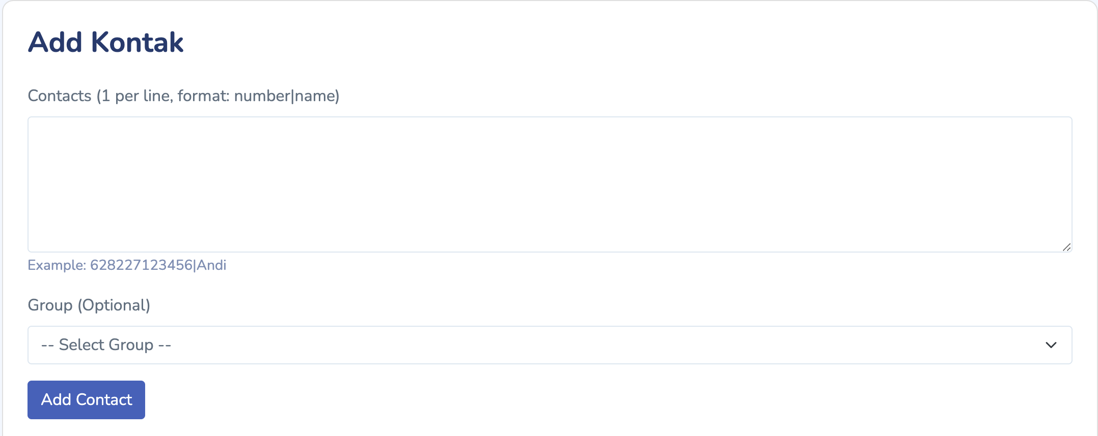 Jika daftar kontak lebih dari 1 bisa ditulis dibawahnya, Kemudian pilih group yang sudah dibuat sebelumnya, jika anda tidak ingin memakai group kontak bisa skip bagian ini.